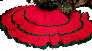 Crochet Shells Christmas Tree Skirt Pattern in Red and Green Yarn